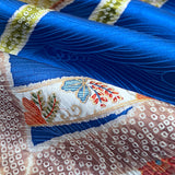 鮮烈なるブルー地に、織り(地紋)・染め・金彩のフュージョンにより生み出された美しい意匠。