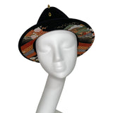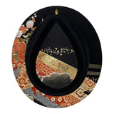 A one-of-a-kind hat handcrafted from a vintage silk kimono (Black-Tomesode) from the Showa period (1926-1989).