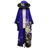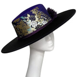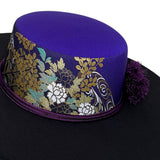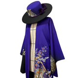The design is hand-painted with gold leaf and special materials on pure silk dyed in a gradation of purple to black.