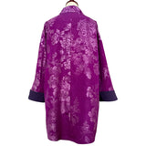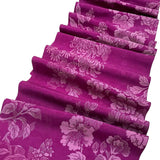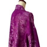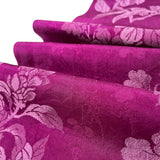 Graceful floral silhouettes emerging from a purple silence. With every movement, light reveals hidden blooms in the woven texture—a timeless beauty for your own style.
