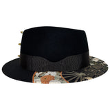 昭和時代 (1926年-1989年) の正絹着物 (黒留袖) から制作した、一点物の帽子。