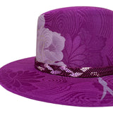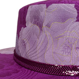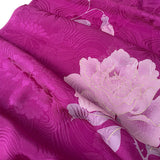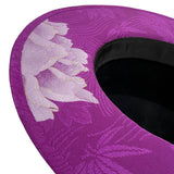 色鮮やかなパープルに、繊細な金彩で縁取られた優美なホワイトローズ、見る角度により浮かびあがる織り模様 (地紋) が特徴です。