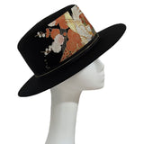 正絹着物 (黒留袖) から制作した、一点物の帽子。